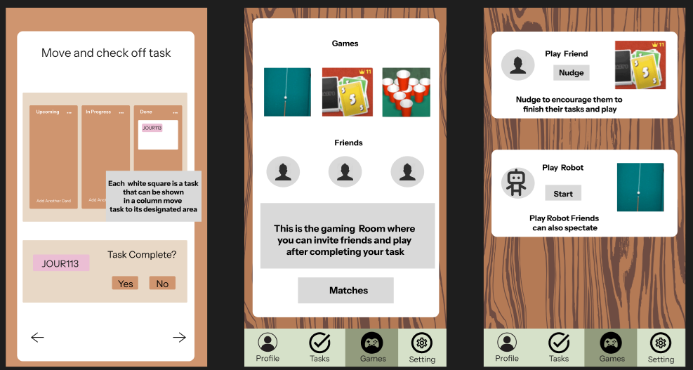 User feedback: Some of the icons in our mid fidelity prototype were confusing. We had to add more screens.